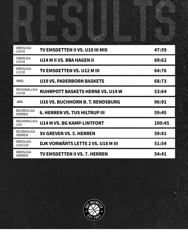 Auf Grund eines Übertragungsfehlers steht im Bild irrtümlich, dass die 3. Damen nicht gespielt hätten. Dies ist nicht der Fall sie gewannen 79:74