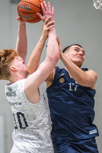 Auf 59:52 kamen die Gäste wieder heran. Leo Kirchhoff stemmte sich dagegen, war weiterhin sehr aktiv, hatte aber kontinuierlich mit dem sehr physischen Spiel zu kämpfen, das aus UBC-Sicht zu selten durch Foul-Pfiffe zugunsten der Münsteraner unterbrochen wurde.