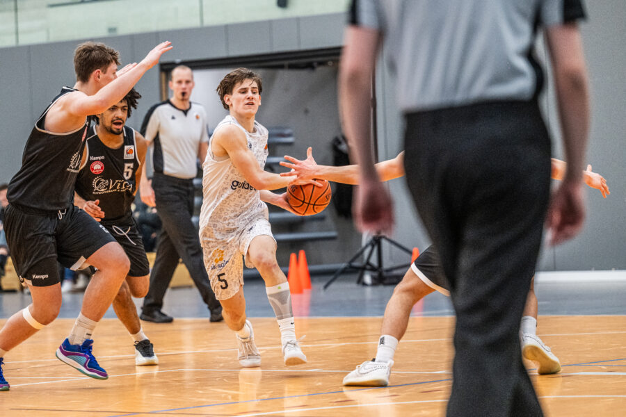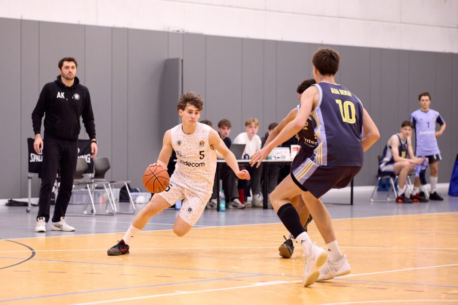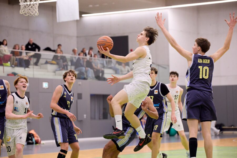 Aber dann kommt man in den ersten Kontakt und alle sind wirklich super nett. Alle reden mit einem, alle interessieren sich für einen, dann geht das Training los, das ist dann wie hier und man hat Spaß. Ich wurde sofort in das Team integriert, wurde direkt angenommen. Alle haben mit mir geredet, alle haben mit mir Sachen gemacht. Ich stehe nicht nur am Rand, sondern ich darf richtig mitmachen. Es ist natürlich dann wieder jetzt ein Niveausprung, den man erlebt. Also von der ersten Regionalliga oder dann auch von der NBBL ist es natürlich nochmal ein ganz anderes Niveau. Alle sind schneller, alle sind weiter. Die einfachen Dinge, die hier in NBBL funktionieren, funktionieren da auf gar keinen Fall mehr. Man muss sich ein bisschen anpassen. Aber ich freue mich drauf. Es ist eine Challenge und ich kann, glaube ich nur Profit rausschlagen, wenn ich da jetzt wieder gegen noch bessere Spieler mitspielen und mittrainieren darf.