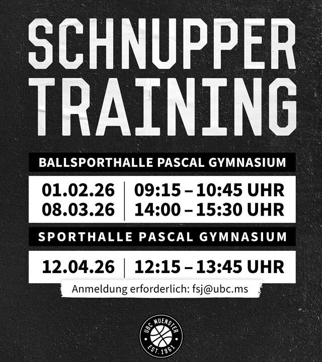 Lust auf Basketball? Auch in diesem Jahr bieten wir wieder Schnuppertrainings für 6-14 Jährige an  📍 Pascal-Gymnasium 📅 01.02.26 | 09:15–10:45 Uhr (Ballsporthalle) 📅 08.03.26 | 14:00–15:30 Uhr (Ballsporthalle) 📅 12.04.26 | 12:15–13:45 Uhr (Sporthalle) […]